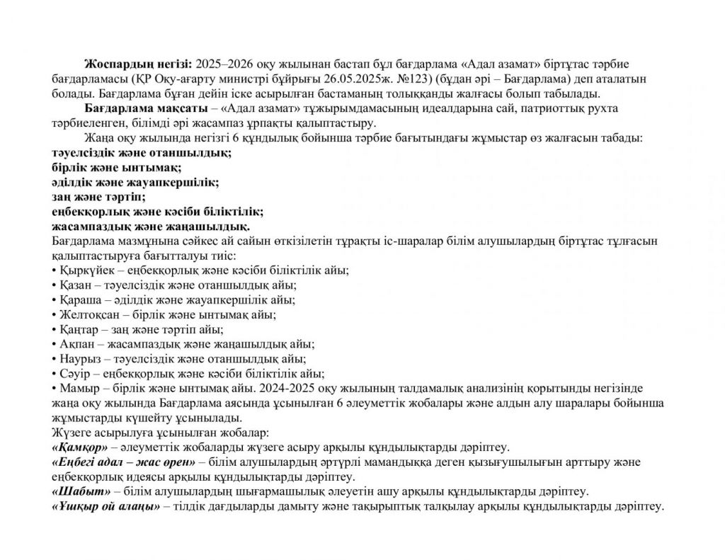 Жылдық жоспар 2025-2026